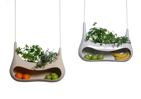 Cocoon this storage unit for fruits and vegetables in a modern kitchen. Cocoon is made of a clay that absorbs water from the cultivation. When it evaporates the storage is cooled down. In this organic shape you can grow spices and store fruits, which will give you both life and colour in the kitchen. Designer: Mans Salomonsen